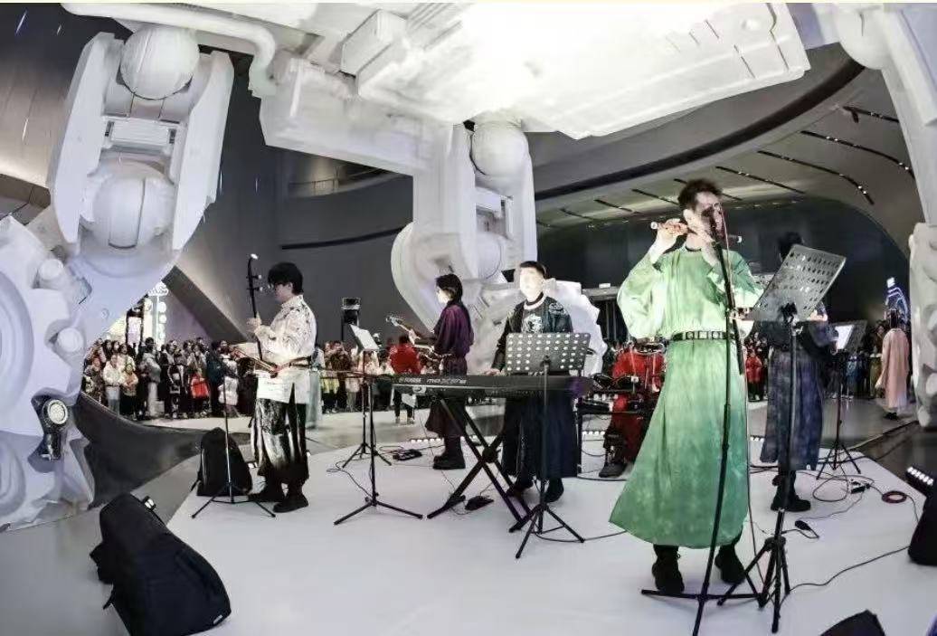 郫都各类新春活动全域覆盖、精彩纷呈。成都科幻馆“星云奇妙夜”第三季点亮新春夜空,马年定制光影水秀、全域泛光秀梦幻震撼,“未来之马”艺术装置、川剧幻梦机械少女秀、机器人舞蹈、机械狗“笨笨”变装秀、科幻实验秀、国风巡游与星云市集轮番登场,科技与非遗、国风碰撞交融,成为年轻人与亲子家庭夜游打卡的顶流场景。