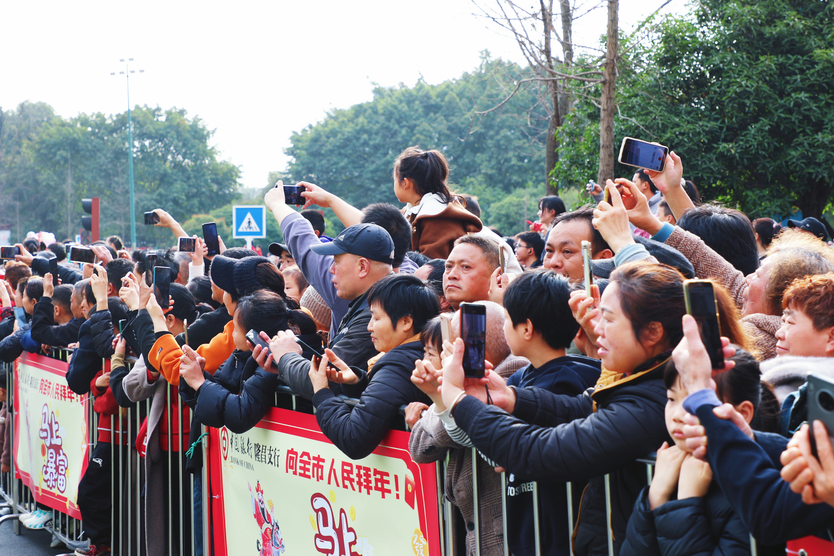 整个巡游队伍由17个方阵组成,分别是锣鼓表演队、“三个隆昌”花车方阵、“隆昌风采”方阵、“稻田虾羊肉汤”方阵,以及紧随其后的13个舞龙方阵。巡游队伍行至金沙广场、新街里两个接龙台时,祥龙依次登台表演,锣鼓声、鞭炮声、欢呼声交织在一起,将年味推向了高潮。现场观众或驻足观看,或跟随队伍前行,用镜头记录下这一精彩瞬间。