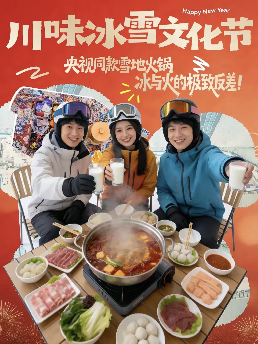 成都热雪奇迹推出“热雪开局,畅滑川渝”新春系列活动,游客在-6℃的冰雪世界中体验“冰雪+火锅”,感受冰火交融的独特年味。