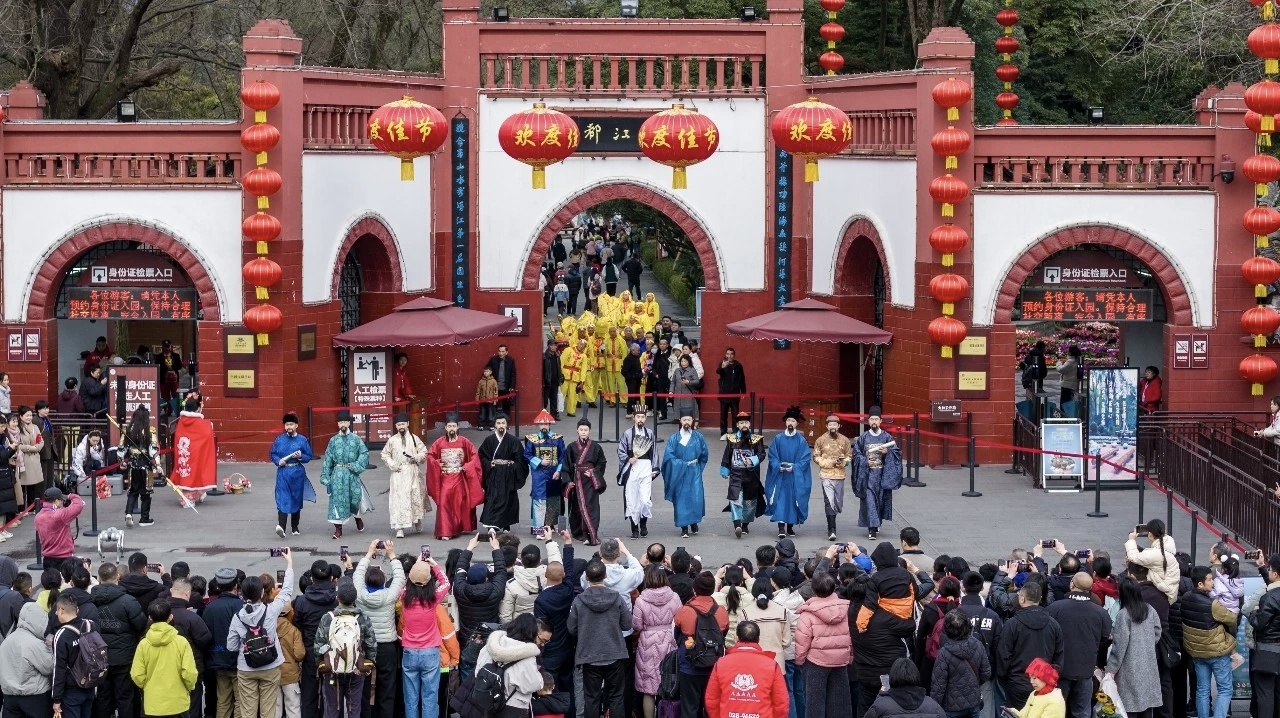 此外,“治水十三堰工”情景表演、古城巡游等活动火热开展,李冰、诸葛亮等NPC穿越千年送祝福,机器狗科技秀更让传统年味与新潮科技惊喜相遇。