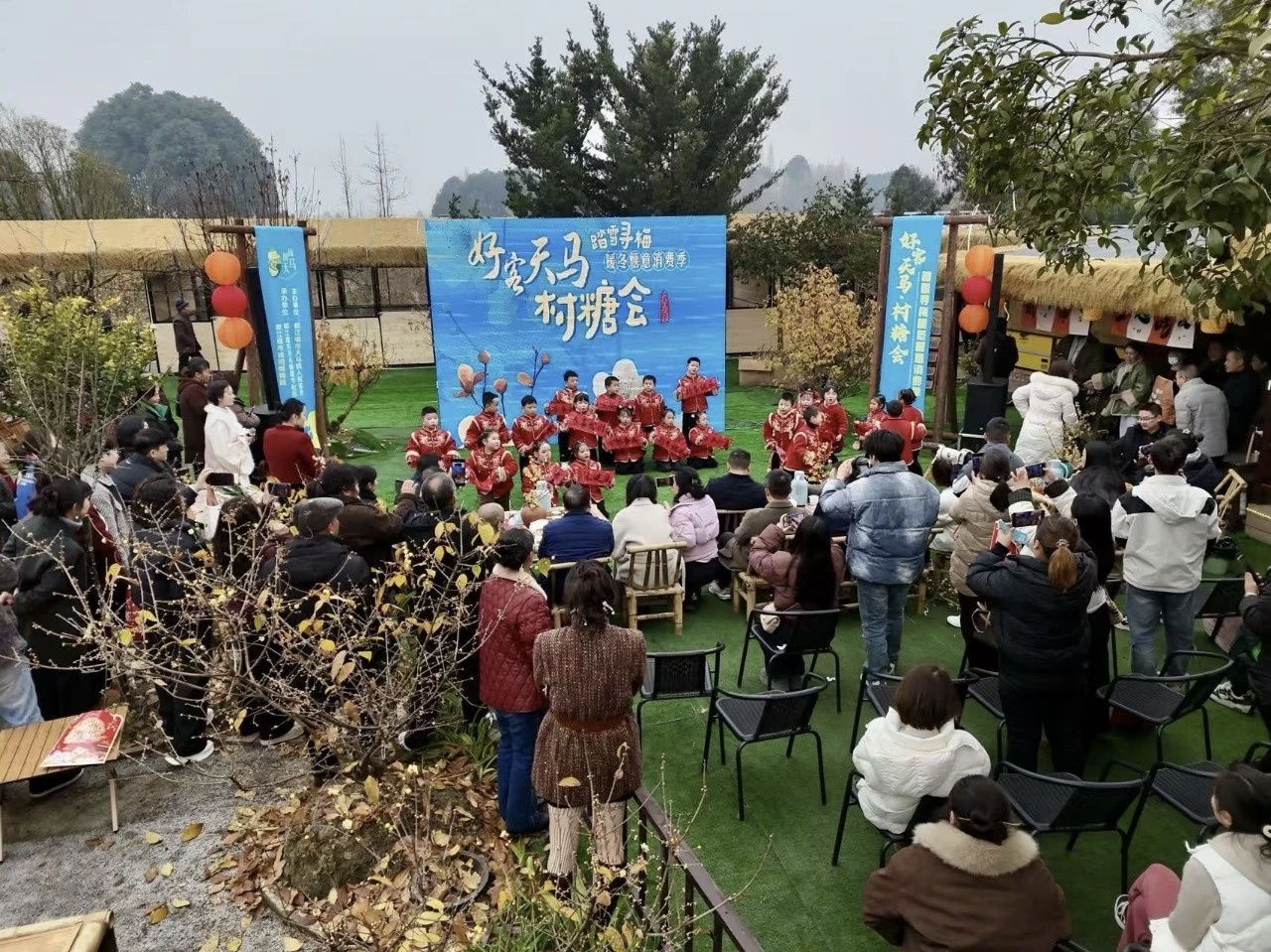 紧扣“珍水万世堰·宠你过大年”主题,该市各镇街特色乡村游也丰富多彩,吸引了众多游客。青城山镇有首届“问花村花海灯会”,天马镇琥珀蜡梅园举办“踏雪寻梅”消费季,聚源镇、灌口街道等镇街同步开展村糖会、舞龙舞狮、NPC巡游、送春联等活动。