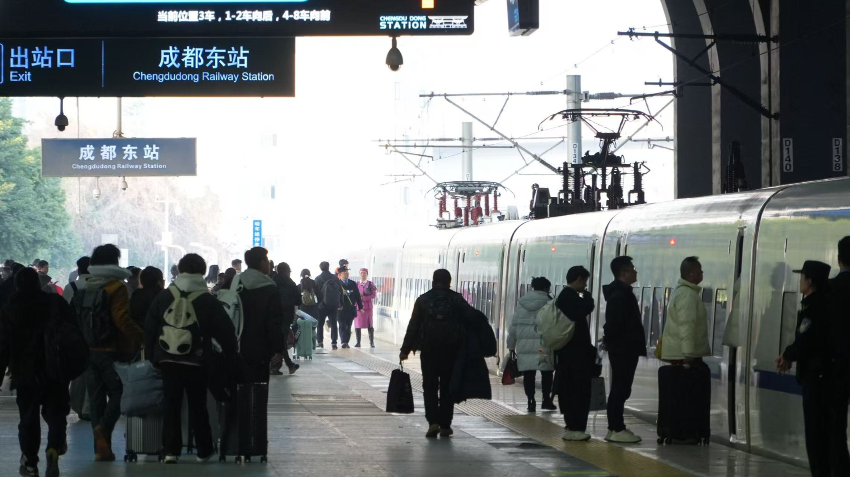 节日期间,成都局集团公司日均开行旅客列车2036列;其中,客流高峰日(2月22日—24日)日均加开临时旅客列车560列,单日开行旅客列车达2223列。