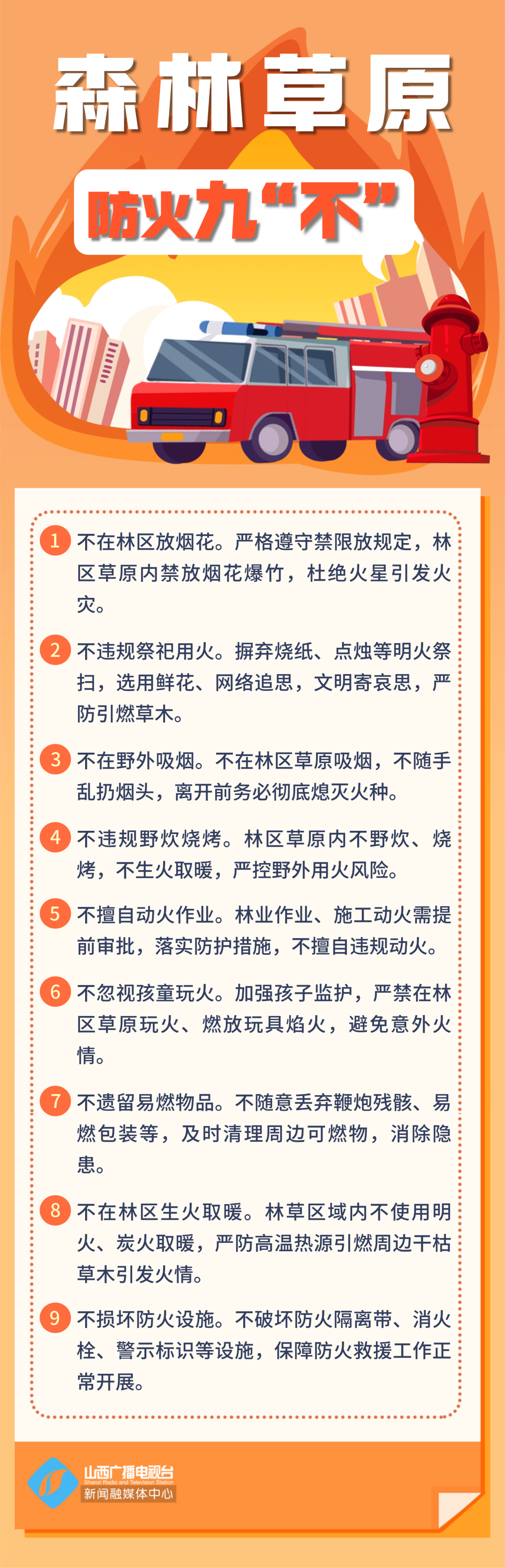 春季森林草原火灾风险高,切勿在林区燃放烟花爆竹、明火祭祀、烧烤野炊……森林草原防火九“不”请收好↓↓↓