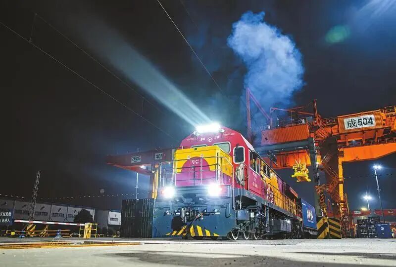 成都中欧班列是中欧班列(成渝)的重要组成部分。去年,中欧班列(成渝)开行量超5000列,这一全国首创的跨省域班列品牌已连续5年保持全国开行量第一,运行线路50余条,覆盖欧亚130余个城市,成为稳定全球产业链供应链的“钢铁驼队”。
