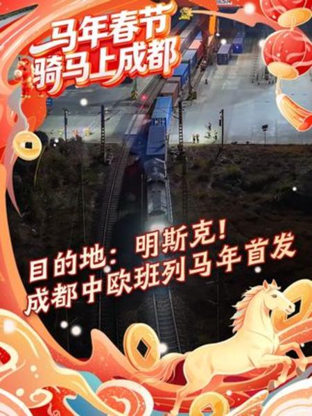 2月17日,正月初一,零点。成都国际铁路港,随着悠长的汽笛声响起,马年第一趟成都中欧班列缓缓发车,开启成都跨境物流新征程。此趟班列共55柜,将经霍尔果斯出境,终点是距成都8000多公里的白俄罗斯明斯克。