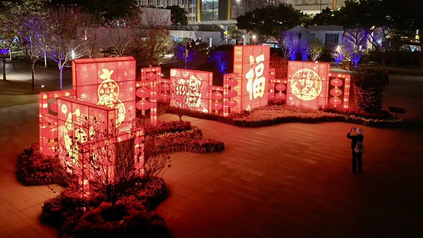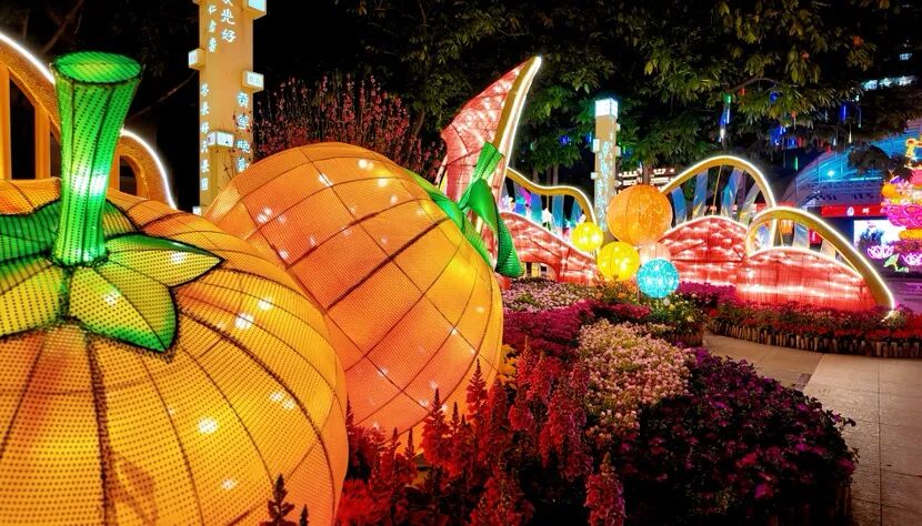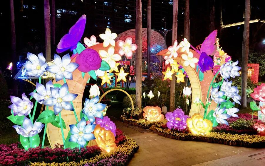 其中,中心广场上的《福果盈瑞》灯组以丰盈果实、温煦宫灯与雅致满洲窗相映,融汇新春纳福的喜庆意趣;《春满繁花》灯组是以大湾区城市风貌为灵感打造的“新中式”风格灯组,与灿烂繁花相映成画,描绘出春满湾区、繁华共荣的锦绣画卷;《粤韵悠扬》传递悠悠粤韵,共贺吉祥新岁。灯会上众多的灯组既展现传统文化,亦展现岭南特色,传递新春祝福,带给广大市民“一灯一意境,一步一画卷”的沉浸式体验。