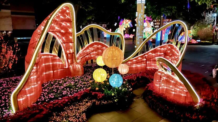 据悉,今年灯会秉持绿色低碳理念,整体采用节能环保材料,巧妙结合园区水景与林木布设,营造出“火树银花不夜天,流光溢彩映春色”的诗意画卷。