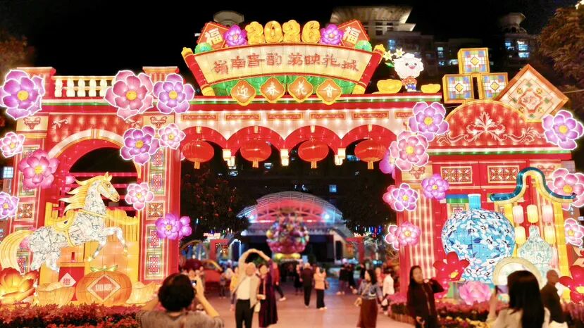 作为迎春花会的压轴重头戏,2026年元宵灯会以精心设计和匠心制作,打造出春意盎然、喜庆盈盈的灯组,展出多盏大中型彩灯和近千盏彩灯,花灯盏盏点亮团圆夜,为市民游客献上精彩的非遗视觉盛宴,营造“月上柳梢头,人约黄昏后”的唯美浪漫,将春节的喜庆气氛推向高潮。