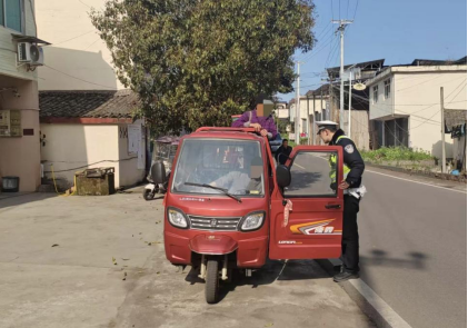 “师傅,你超员了,停一下,这样非常不安全。”宋德智、高士琦眼观六路耳听八方,发现了一辆超员的三轮车,对驾驶员进行安全教育的同时,依法对其进行了处罚。在茶叶交易高峰期、赶场等人员聚集的场所,三轮车超员、未戴头盔的情况时有发生,对此,宋德智和高士琦会早早抵达现场,为周边交通秩序和群众出行安全保驾护航。