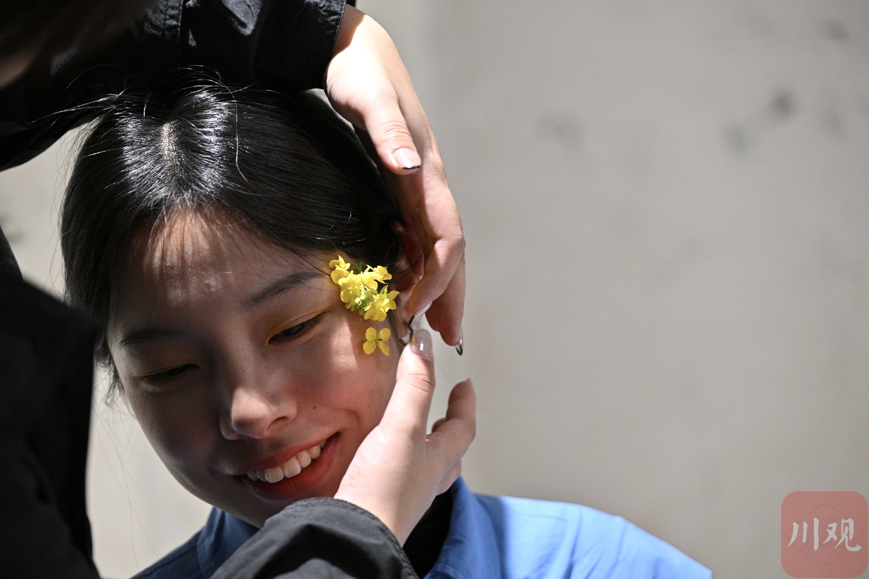 彩妆所内,游客体验充满田园风情的“油菜花妆”。