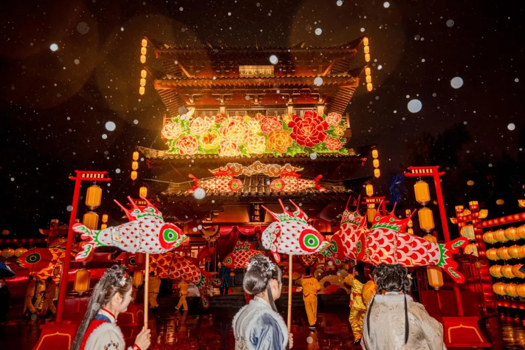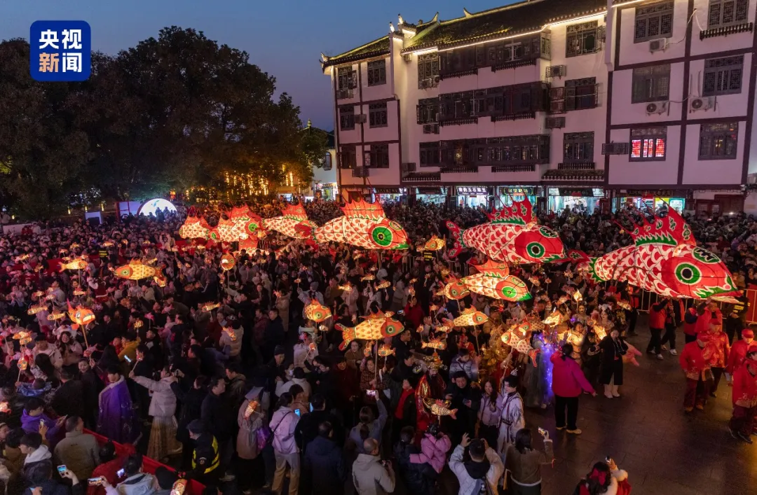 三河古镇春晚分会场取景点的精美场景被完整保留,以“千灯巡游”为引,鱼灯穿梭、非遗展演与市井烟火交织,呈现了视觉与情感交融的文旅盛宴,单日游客人数突破6万人次,假期超10万人次跟随鱼灯打卡古镇。