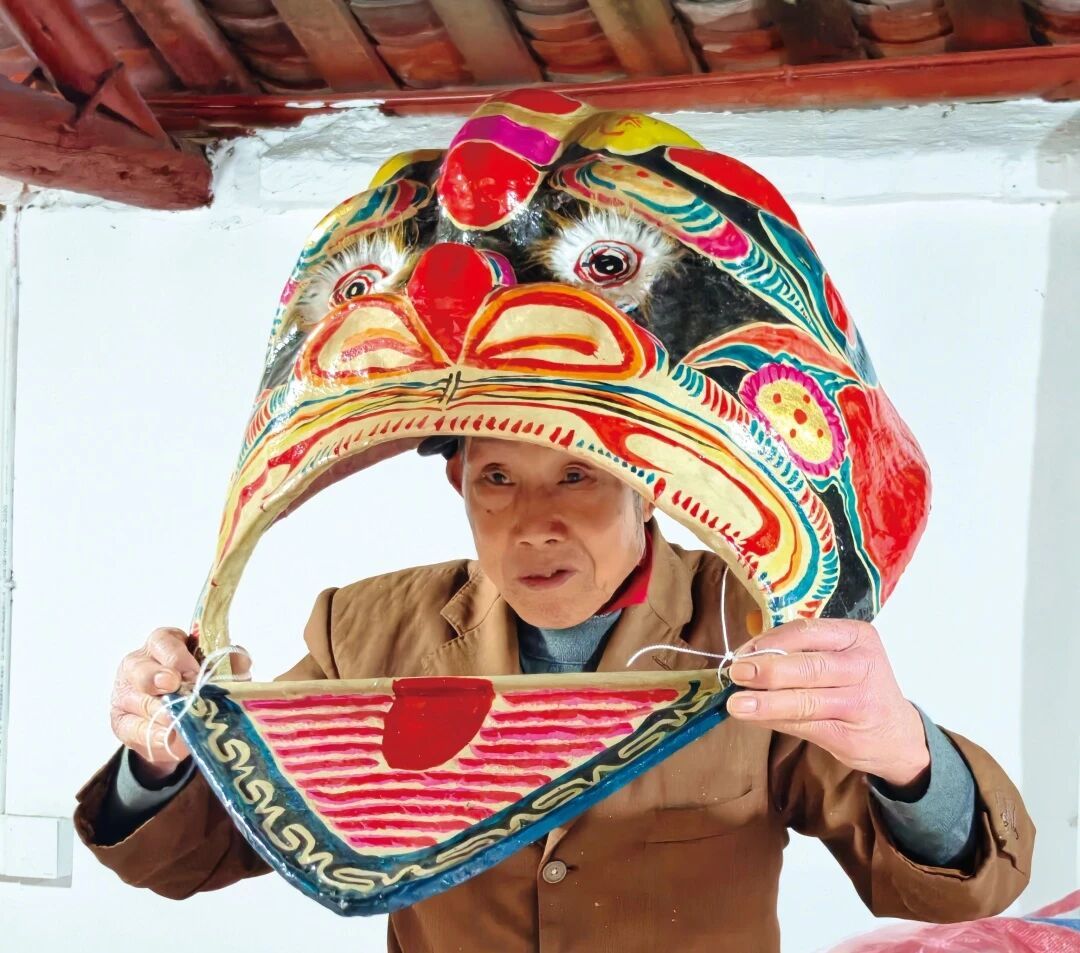 从大年初一到十五,舞狮的队伍走村串户,十里八乡鼓乐喧天,把过年的气氛推向高潮。孩子们老远就开始张望,看完一场表演还意犹未尽,又会跟着队伍跑向下一户人家……如今,这般热闹的场景已不多见,但那份关于“笑头和尚”的温暖记忆,还在大邑县王泗镇七一村一位老手艺人黄家榜的手中延续着。