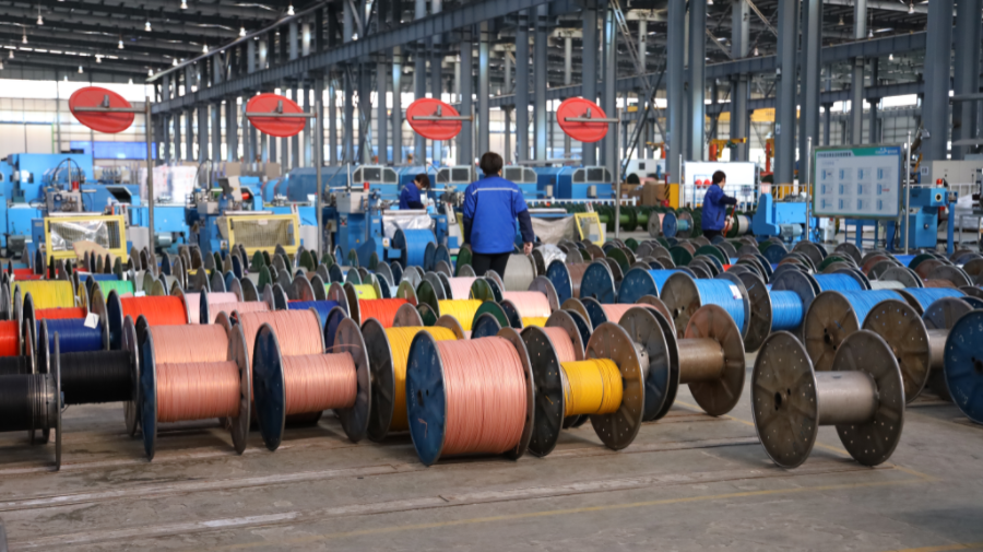 走进尚纬股份有限公司生产车间,映入眼帘的是一派繁忙景象:拉丝机高速旋转,绞线机有序运转,工人们专注地操作着设备,抢抓生产订单。生产线旁,一排排已经制作完成的电力电缆整齐排列,正装车准备发往辽宁等目的地。