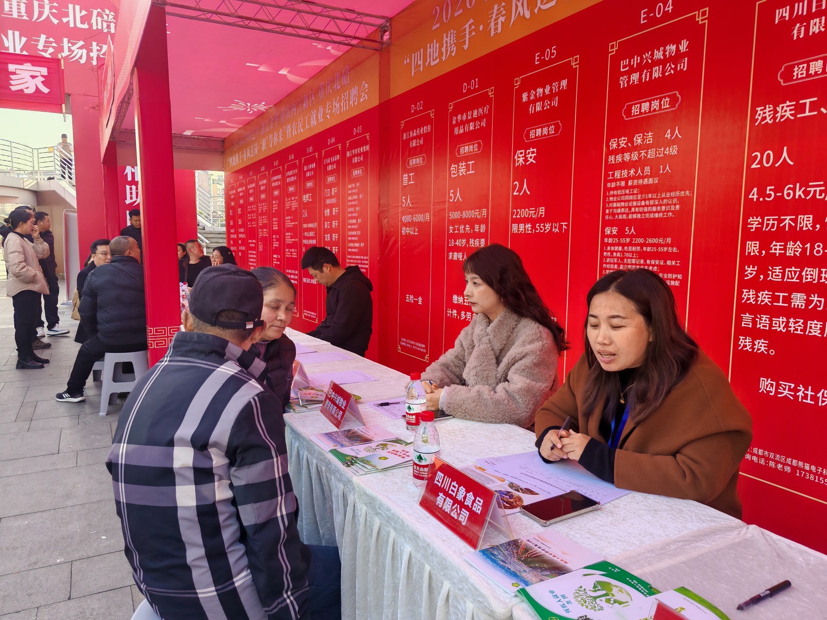 活动现场还设置了银龄招聘专区、残疾人招聘专区,为不同群体提供精准服务。来自巴中市巴州区的李大爷在银龄专区仔细询问保洁岗位:“我62岁了,身体还行,想找个活干贴补家用。”一旁的残疾人招聘专区,某爱心企业为残障人士提供了客服、手工制作等岗位,并配备无障碍面试区。
