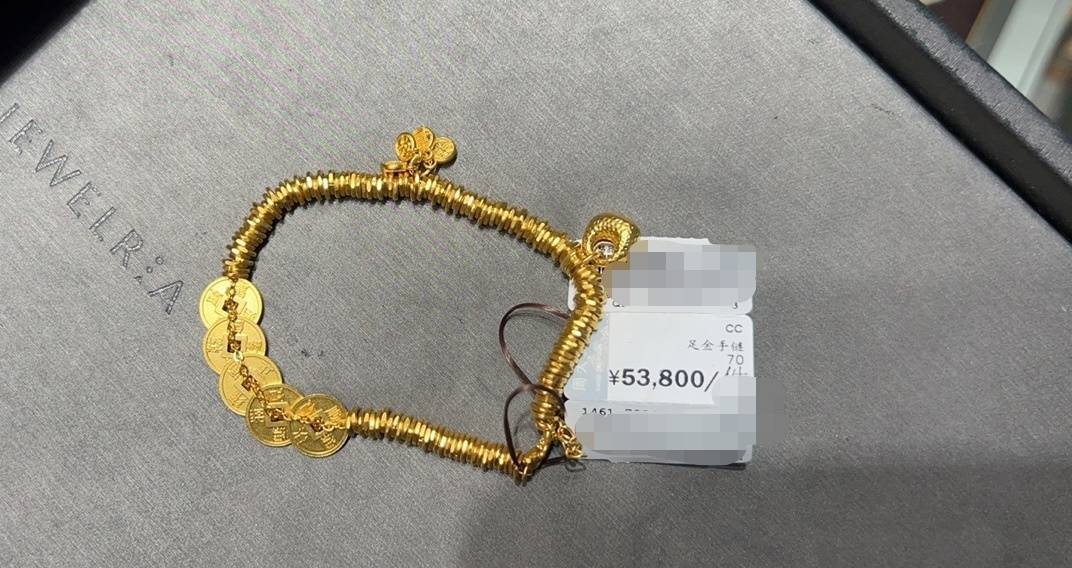 五帝钱手链现货即将调价。图片由周大福门店工作人员提供