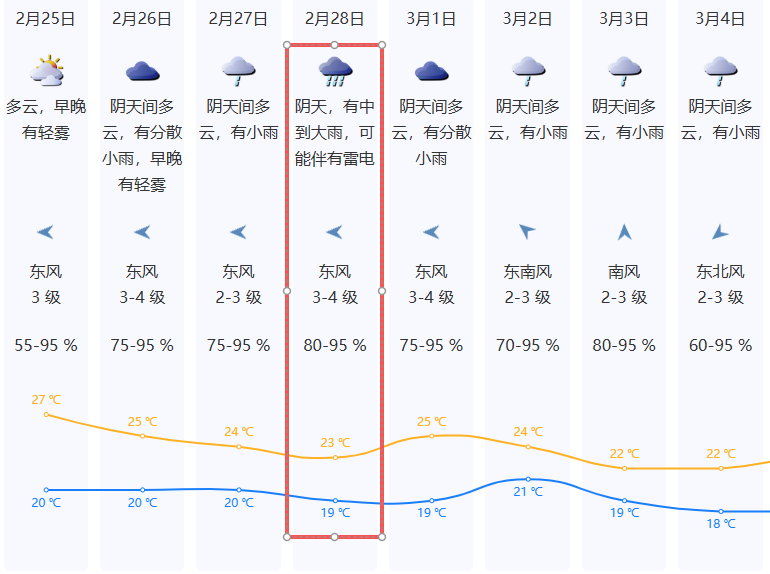 展望3月1-4日潮湿多雨,其中3-4日受冷空气影响,气温小幅下降。