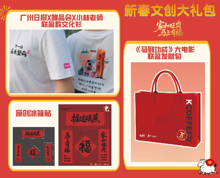 2026年2月11日—2月24日,点赞、分享、推荐广州日报微信任意文章后,截图发至后台并私信“家和旺岗+姓名+手机号”,小编随机抽20位粉丝,每人赠送一份新春文创大礼包。新春文创大礼包包括广州日报X唯品会X小林老师联名款公益文化衫1件、原创冰箱贴1套、《马到功成》大电影联名发财包1个,免费快递到家。
