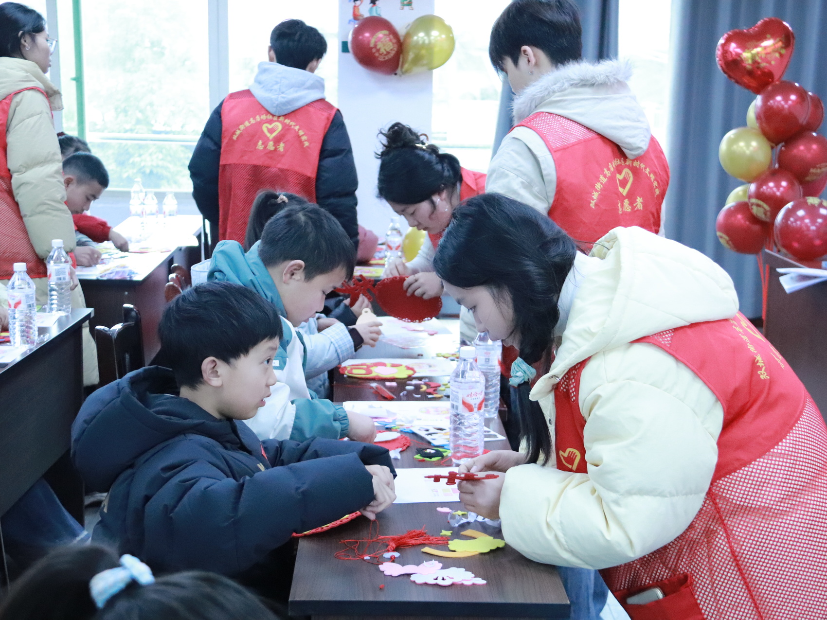 近日,宜宾三江新区双城街道高店场社区的托管班开展“醒狮挂件手工DIY”活动。