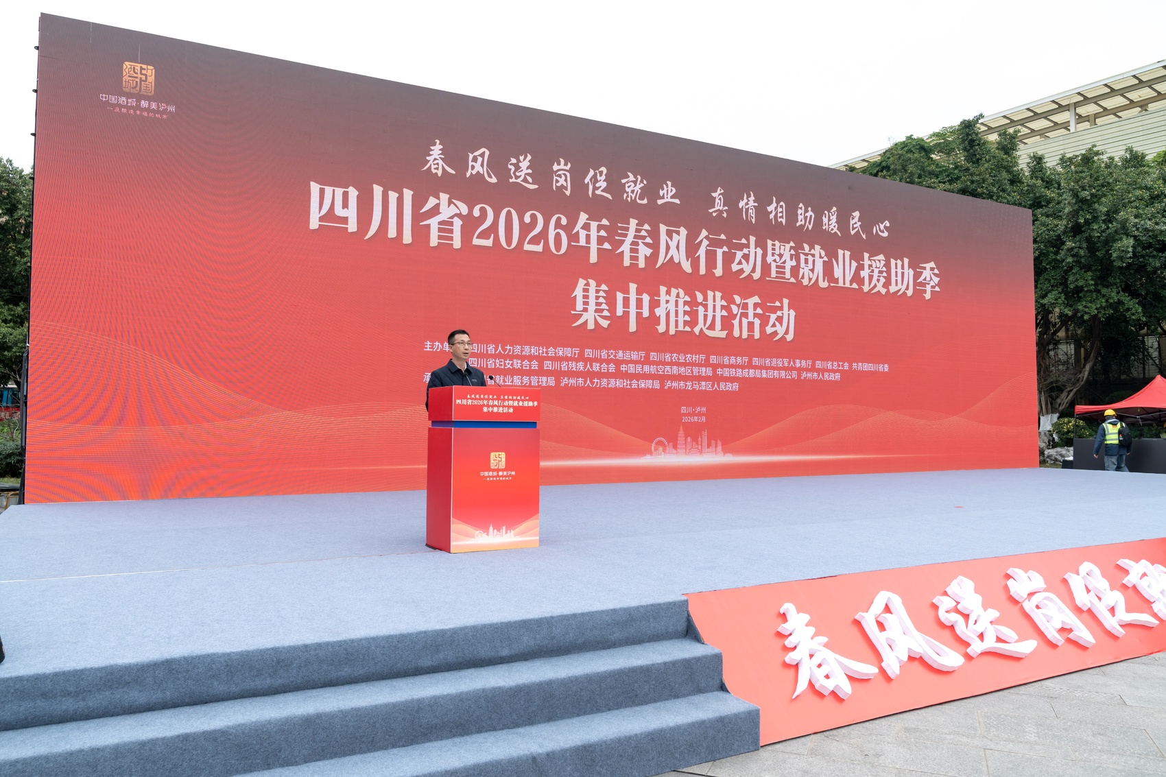此次活动由四川省人力资源和社会保障厅联合交通运输厅、农业农村厅等12家单位共同主办,四川省就业服务管理局、泸州市人力资源和社会保障局、泸州市龙马潭区政府承办。四川省人大常委会副主任王菲宣布2026年四川省“春风行动”正式启动。
