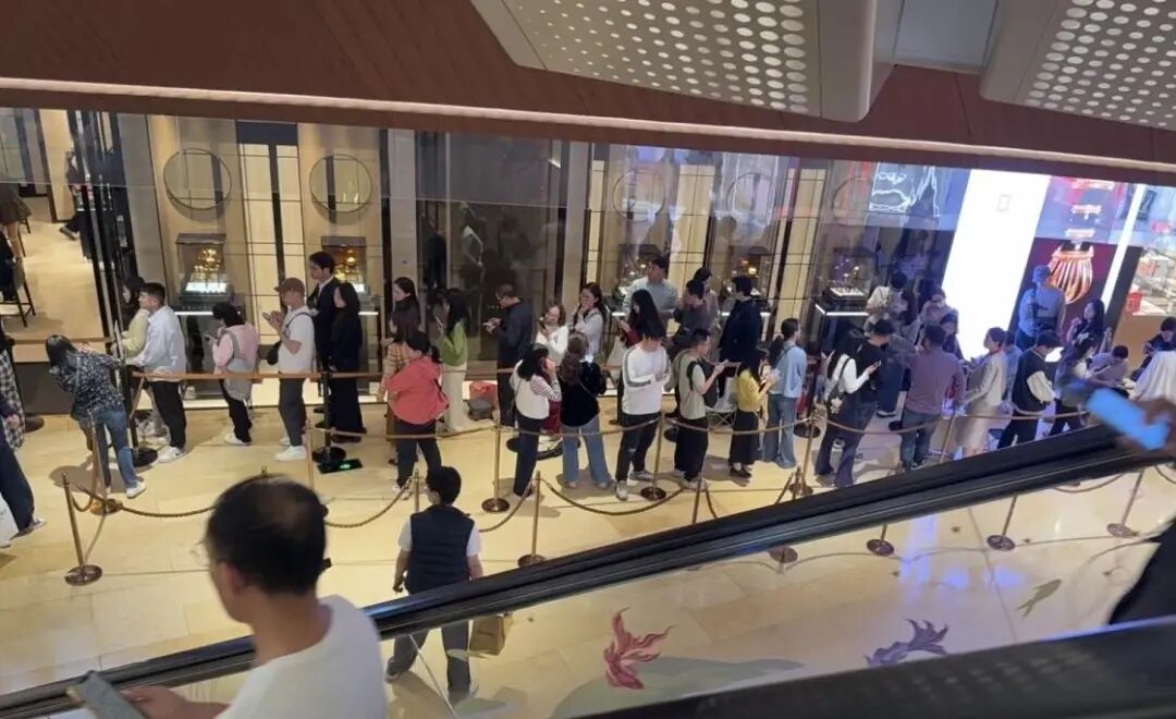 ▲近日,广州一老铺黄金门店排队