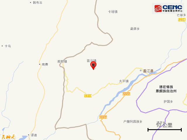 据中国地震台网正式测定,2月25日11时15分在云南德宏州盈江县发生4.6级地震,震源深度10公里,震中位于北纬24.71度,东经97.71度。