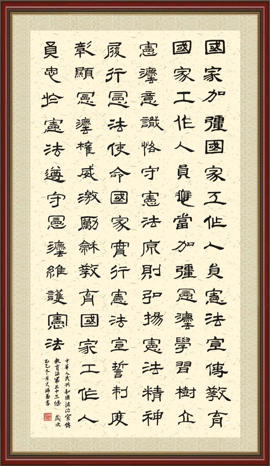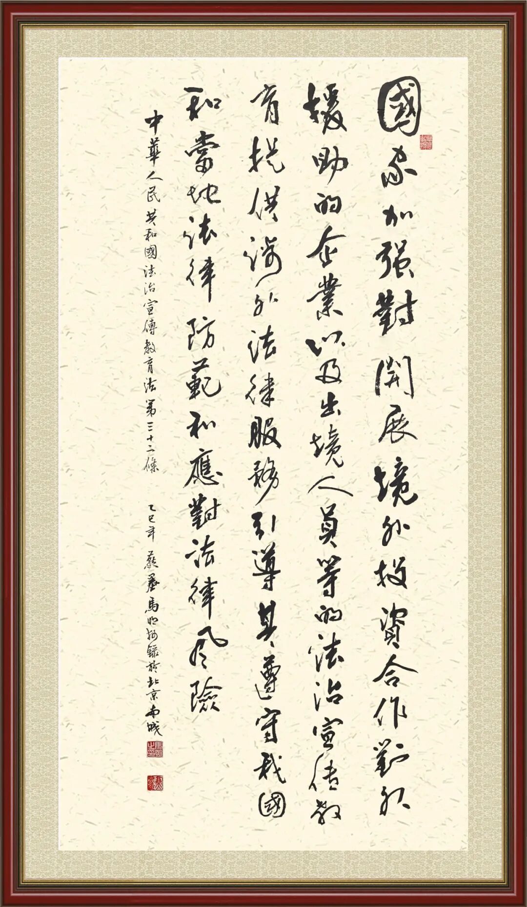 2020年7月11日,由法治日报社主办的“书·法”系列活动正式启动,先后书写《中华人民共和国民法典》《中华人民共和国宪法》《中华人民共和国民营经济促进法》等21部法律法规。