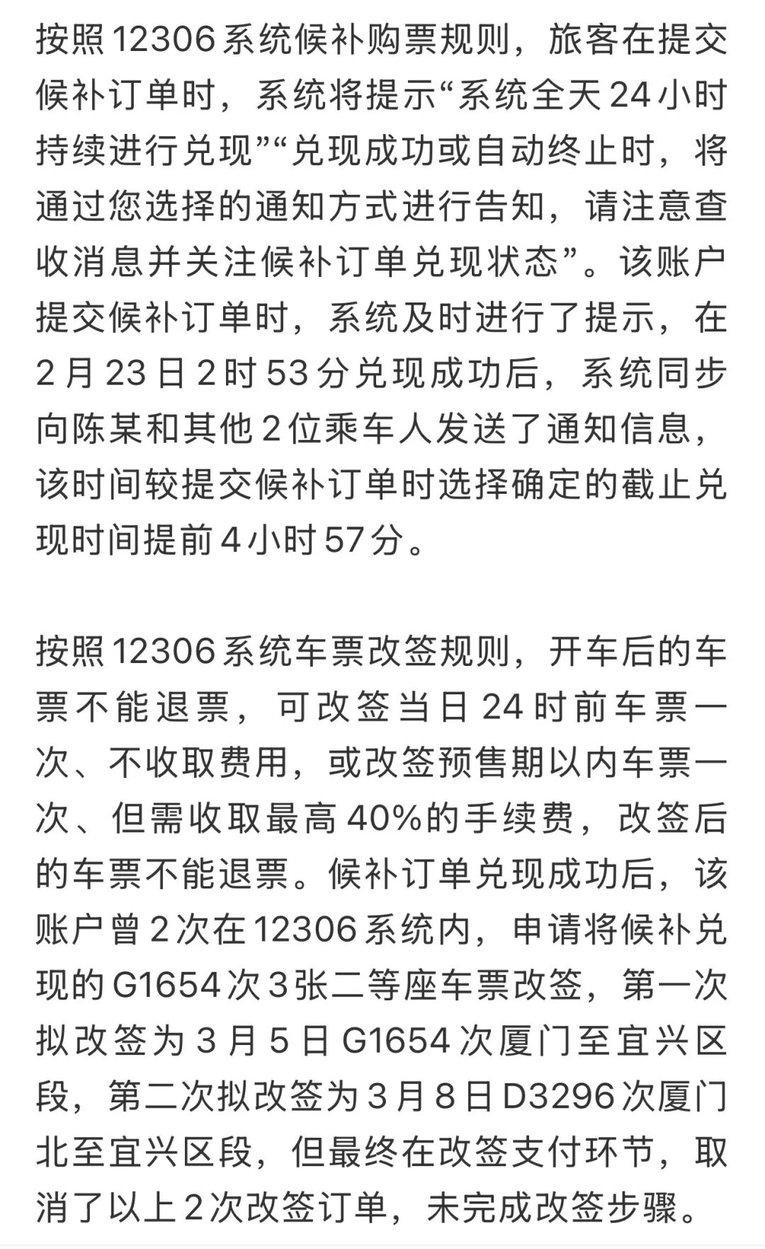 记者从铁路12306技术中心获悉,近日,针对媒体报道的“12306半夜候补成功1700元车票作废”,该中心迅速组织力量进行了核实。