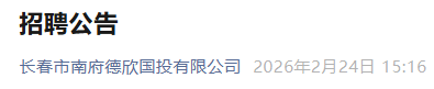 来源:掌上长春、长春市南府德欣国投有限公司微信