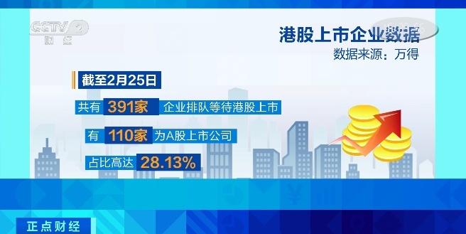 此外,港股“后备军”的阵容也在持续扩容,展现出市场空前的活跃度。据统计,截至2月25日,共有391家企业排队等待港股上市。其中,有110家为A股上市公司,占比高达28.13%。