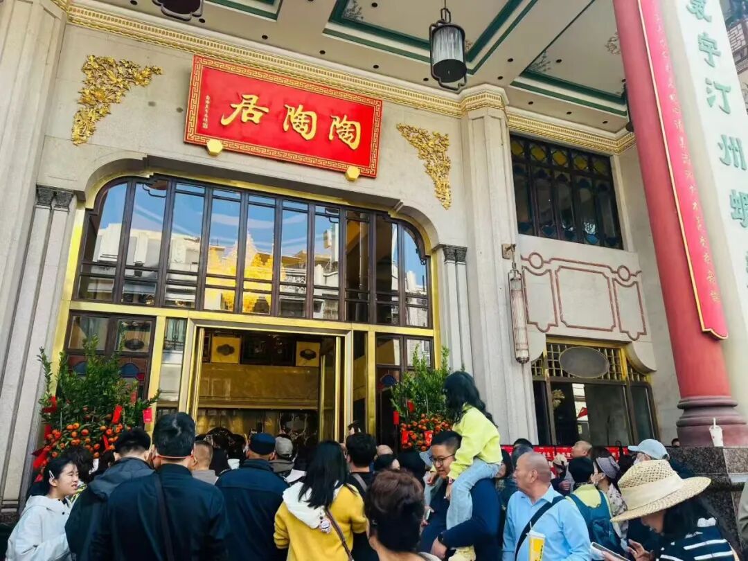 同样火爆的还有陶陶居酒家第十甫路总店。春节期间前台坐满等位的市民与游客,排队场面成为西关骑楼下的过年景象。