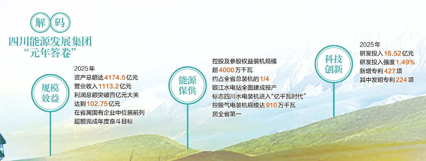 一组组数据引人注目:2025年,四川能源发展集团发电量超390亿千瓦时,售电量超534亿千瓦时,实现输售气超42亿立方米,圆满完成各项保供任务。在一次次“大考”中,四川能源人挺膺担当,让千条银线连接山川河湖,让万盏明灯照亮街头巷尾。