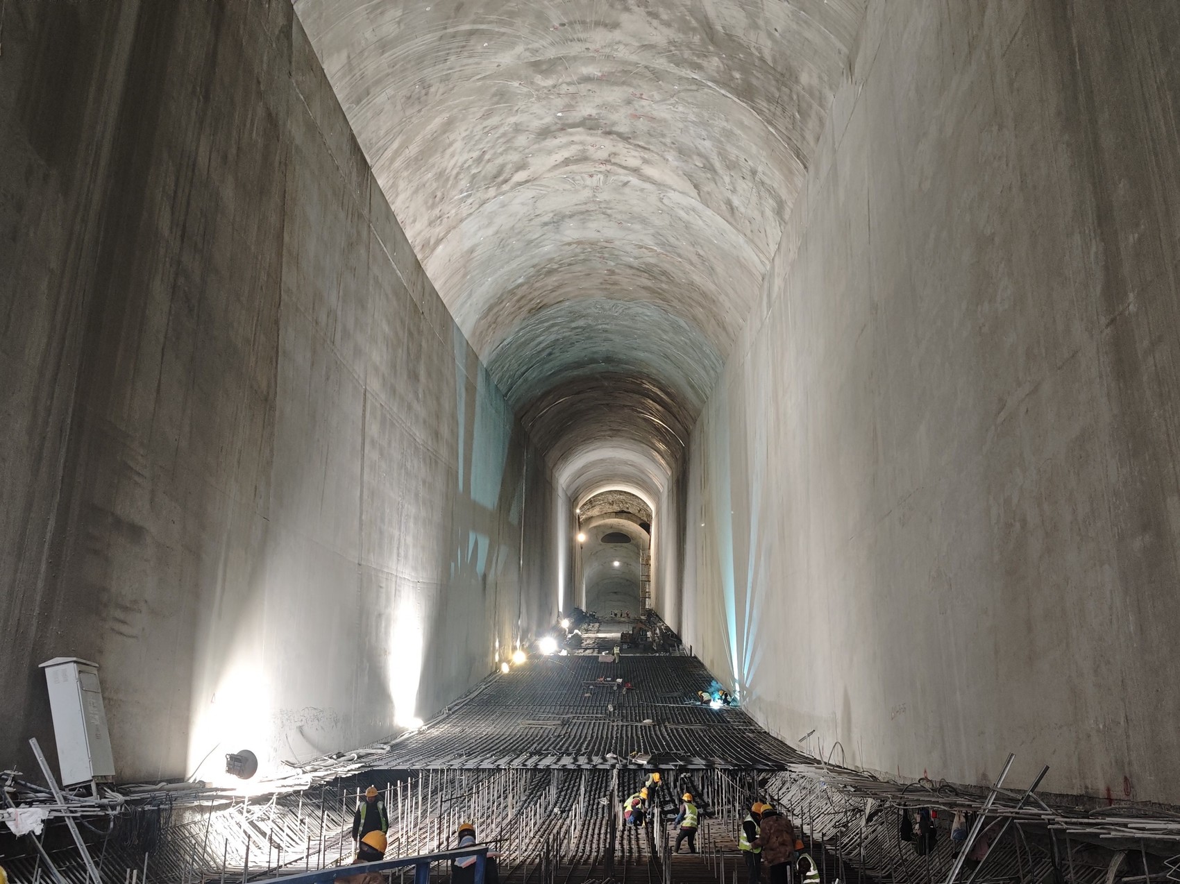 溢洪洞龙落尾段,工人正忙着钢筋制作与安装