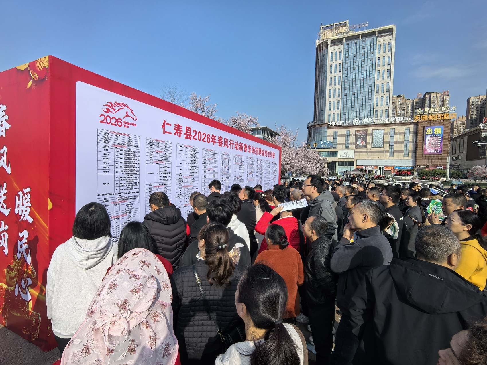 2月25日,眉山市仁寿县2026年“春风行动”新春专场招聘会在县城市湿地公园入口广场举行。本次活动紧扣节后返岗复工关键期,为返乡农民工、高校毕业生、退役军人、就业困难人员等重点群体搭建精准对接平台,全力保障县内外企业用工需求。