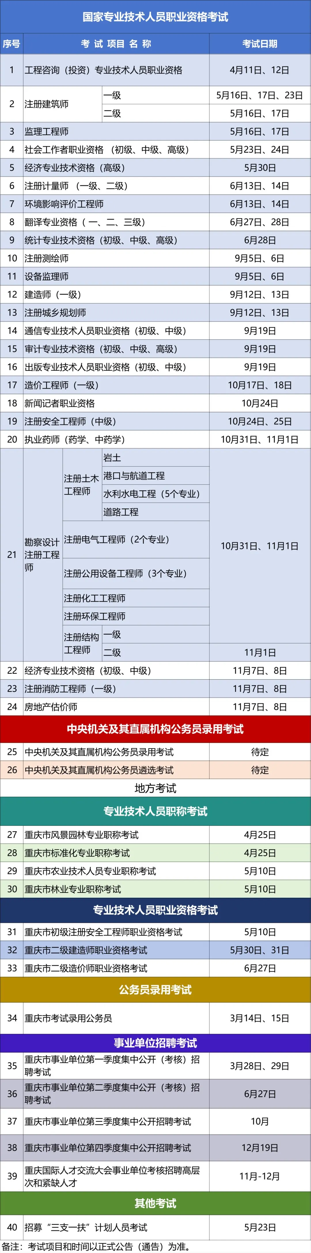 春启新程,考向明朗!备受广大考生关注的2026年度重庆市人事考试工作计划正式出炉,涵盖公务员招录、事业单位招聘、专业技术资格等各类重点考试,清晰明确全年考试安排,为每一位逐梦之人锚定备考方向,护航成长进阶之路。