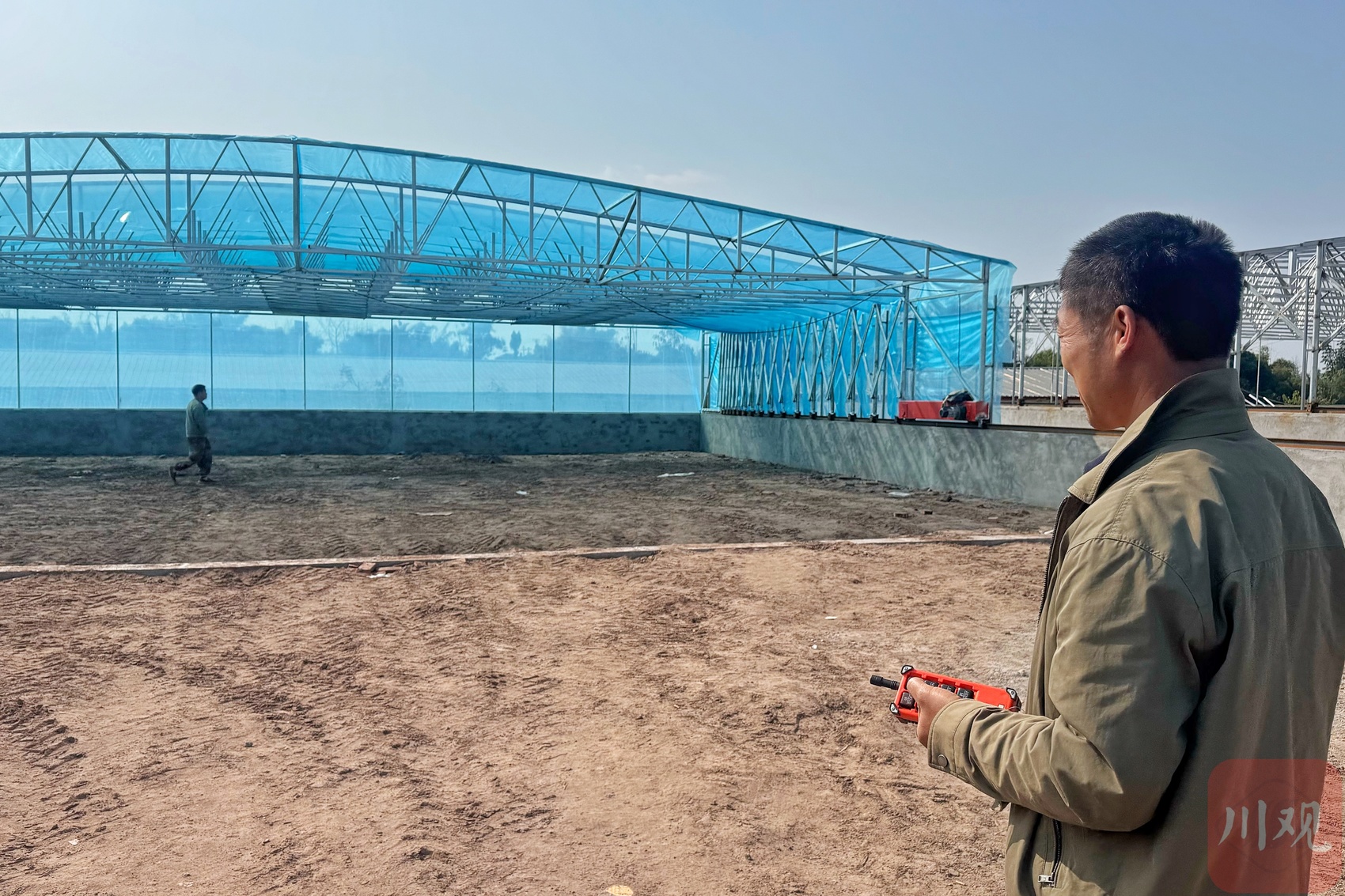 繁忙场景下,泸县水稻种植大户刘道国也没“闲”着,向大棚施工人员叶章彬询问完工时间的同时,抽空向记者展示他的春耕新“帮手”——电动推拉棚。