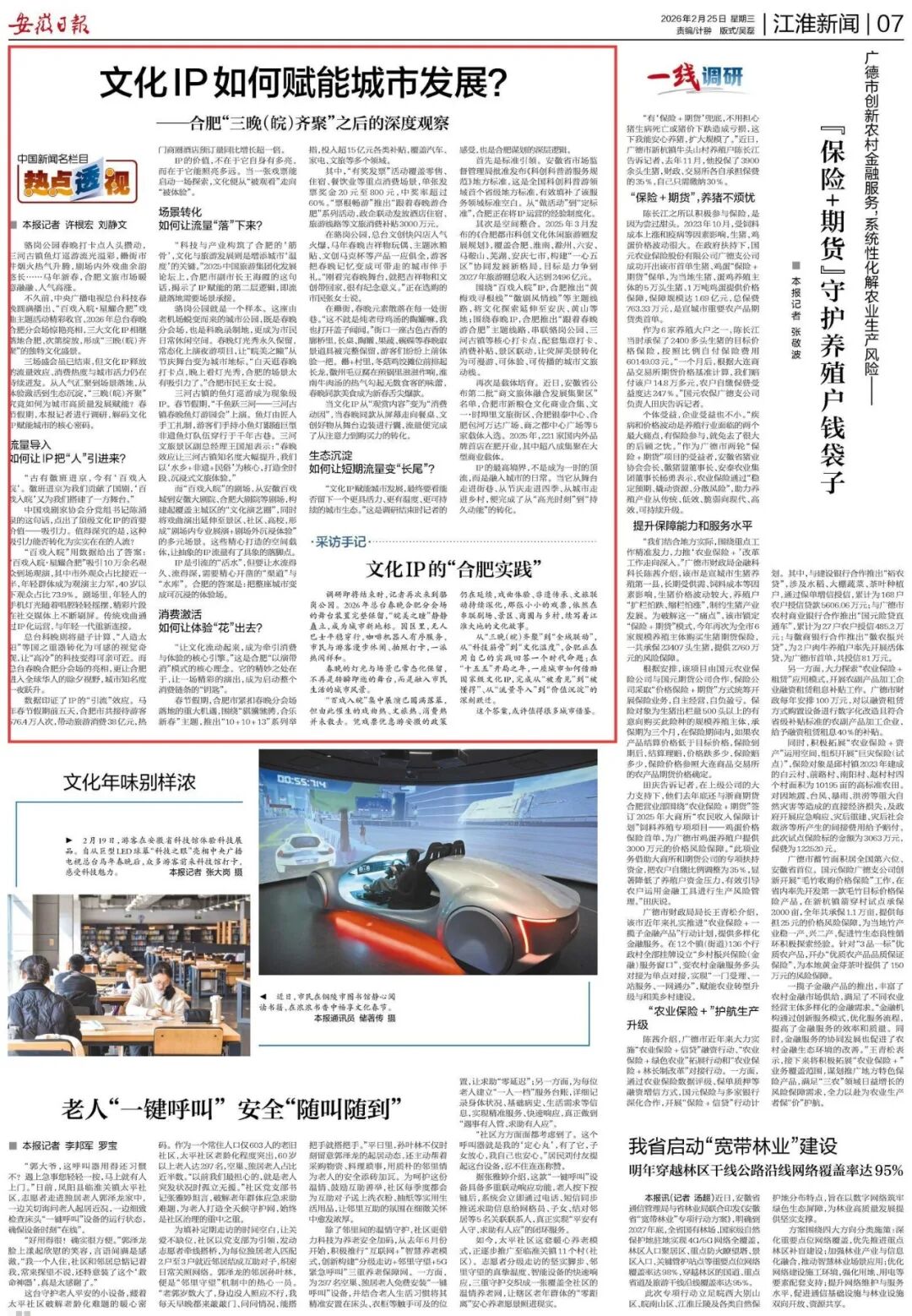 三场盛会虽已结束,但文化IP释放的流量效应、消费热度与城市活力仍在持续迸发。从人气汇聚到场景落地,从体验激活到生态沉淀,“三晚(皖)齐聚”究竟如何为城市高质量发展赋能?春节假期,本报记者进行调研,解码文化IP赋能城市的核心密码。