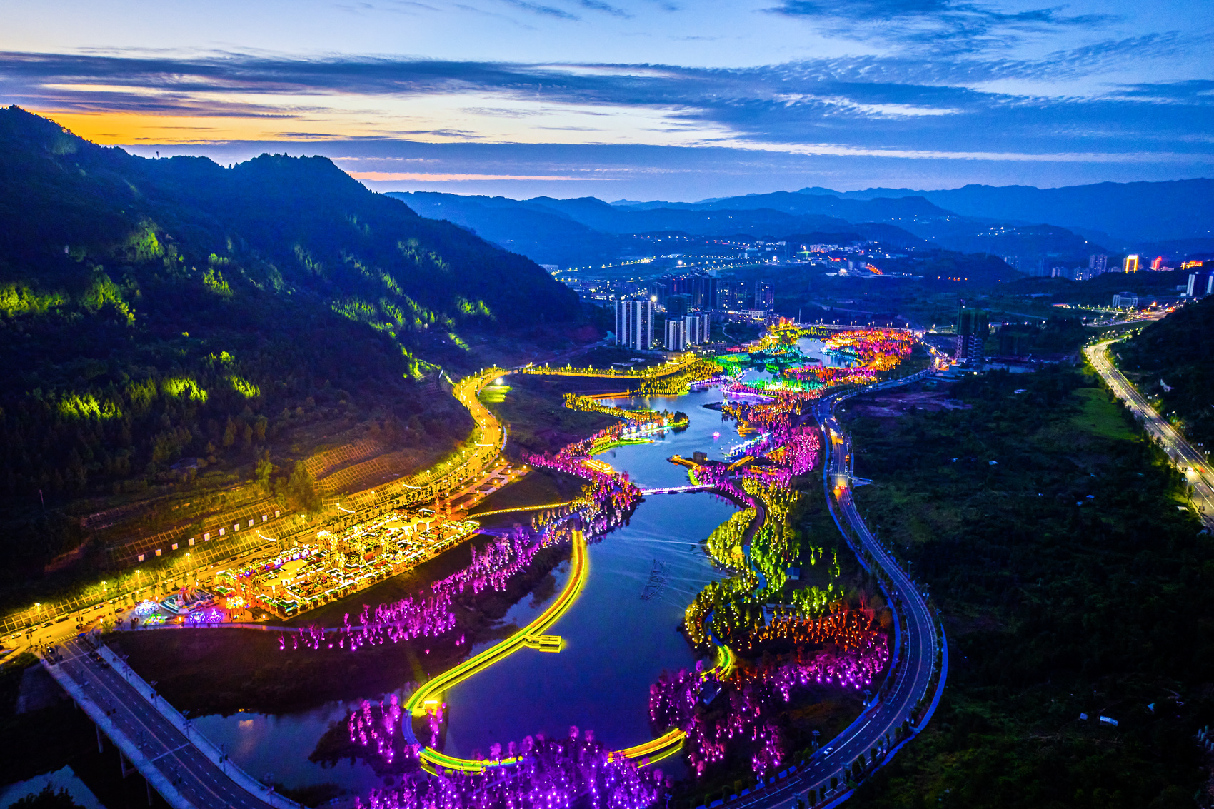 灯火催催的通江花月夜夜景