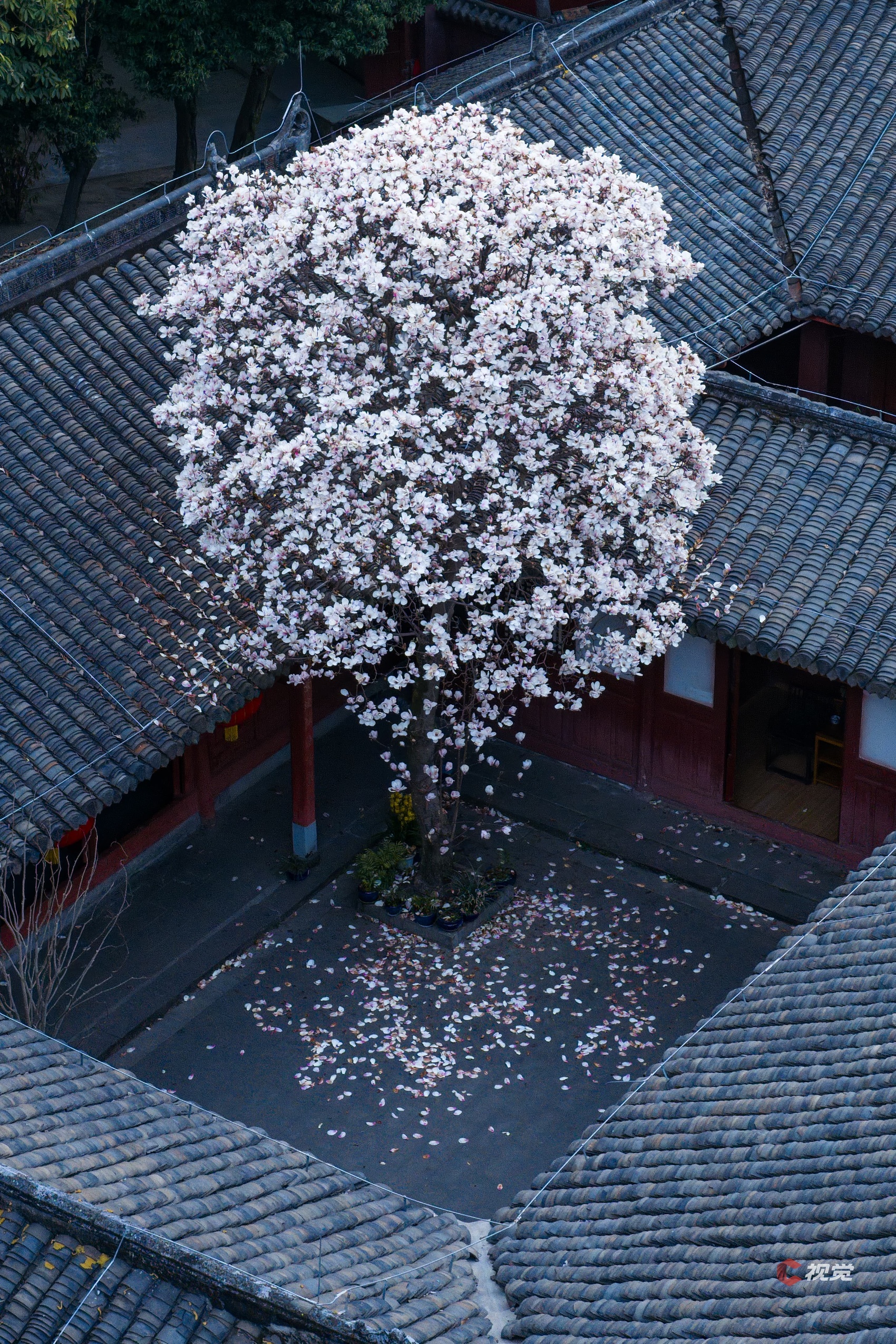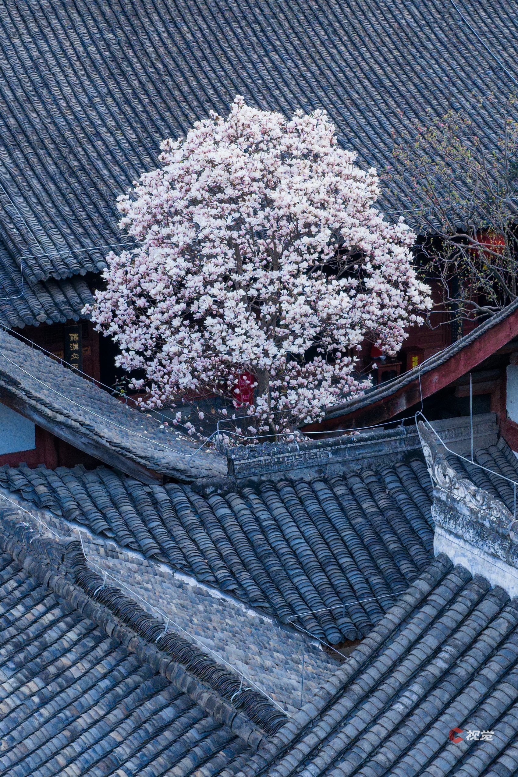 青瓦为框,玉兰为画,这是古寺里独有的春日盛景。C视觉签约摄影师 贾科