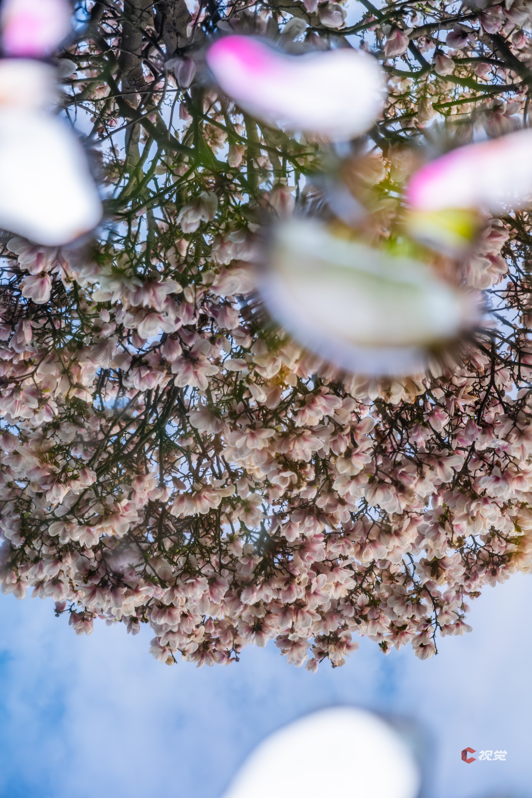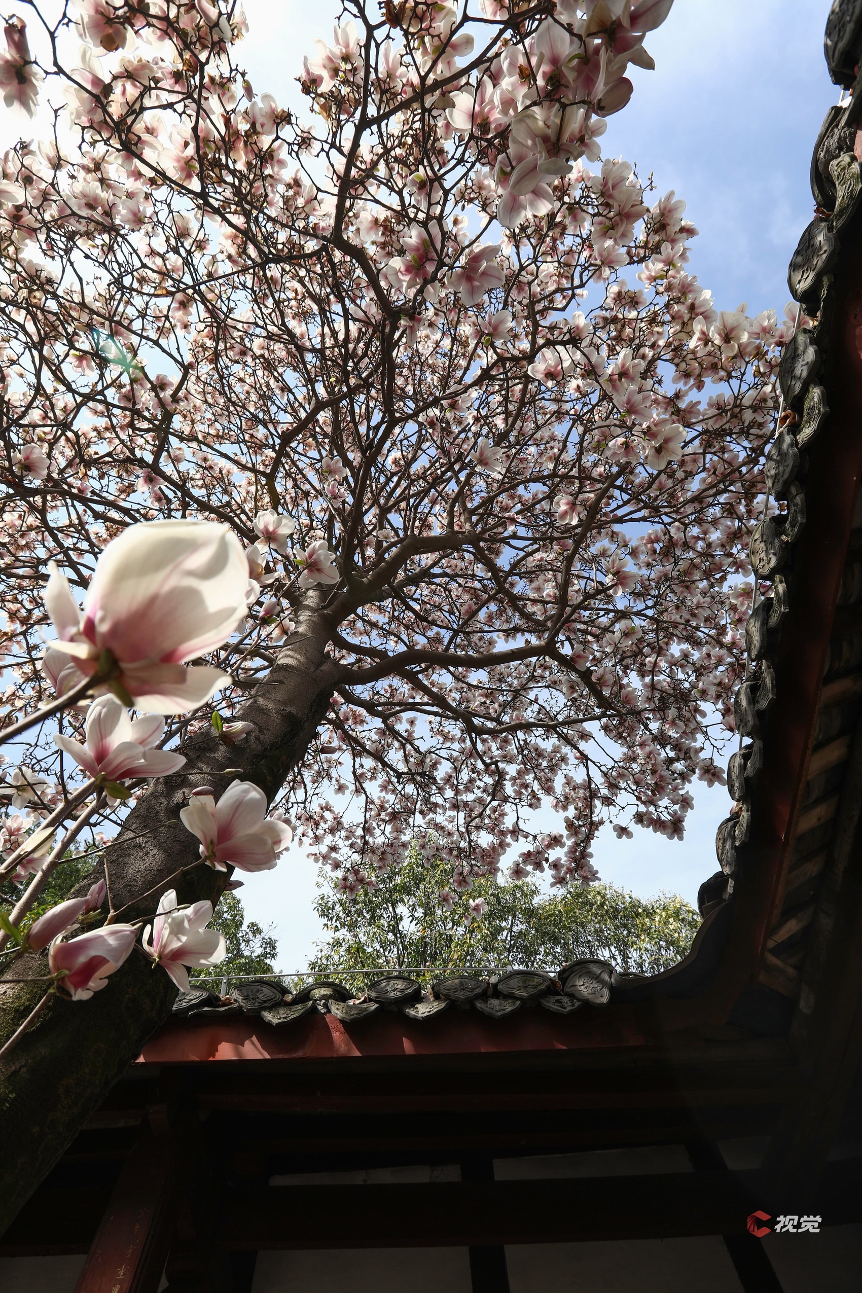 这里是成都玉兰的 “天花板”,成片的白玉兰、红玉兰错落分布在九天楼旁,树龄 10-15 年,核心机位选低机位仰拍,将玉兰与九天楼同框。