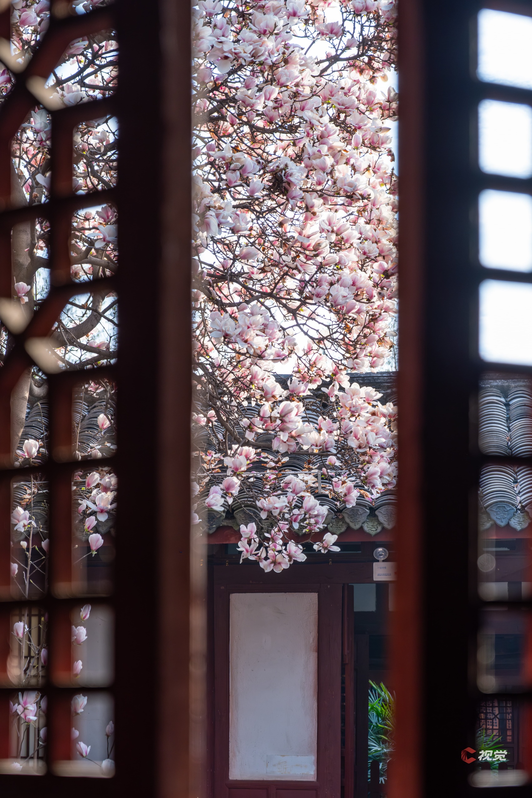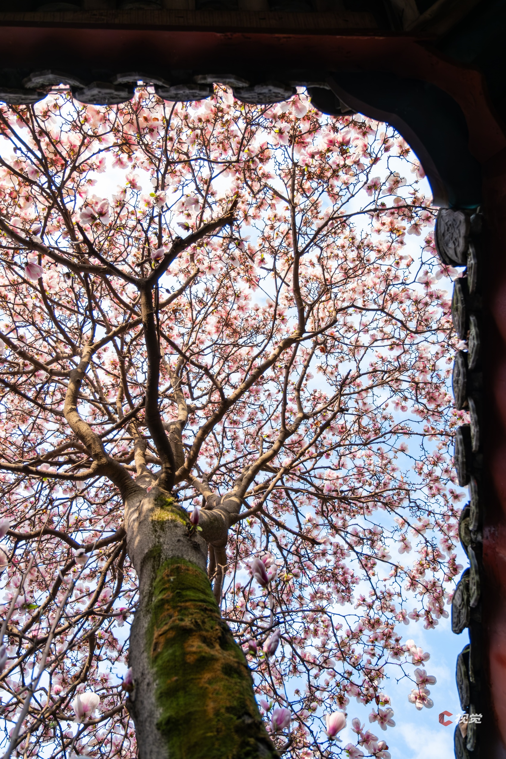 透过古朴的寺庙门框,看见玉兰之美。C视觉签约摄影师 贾科
