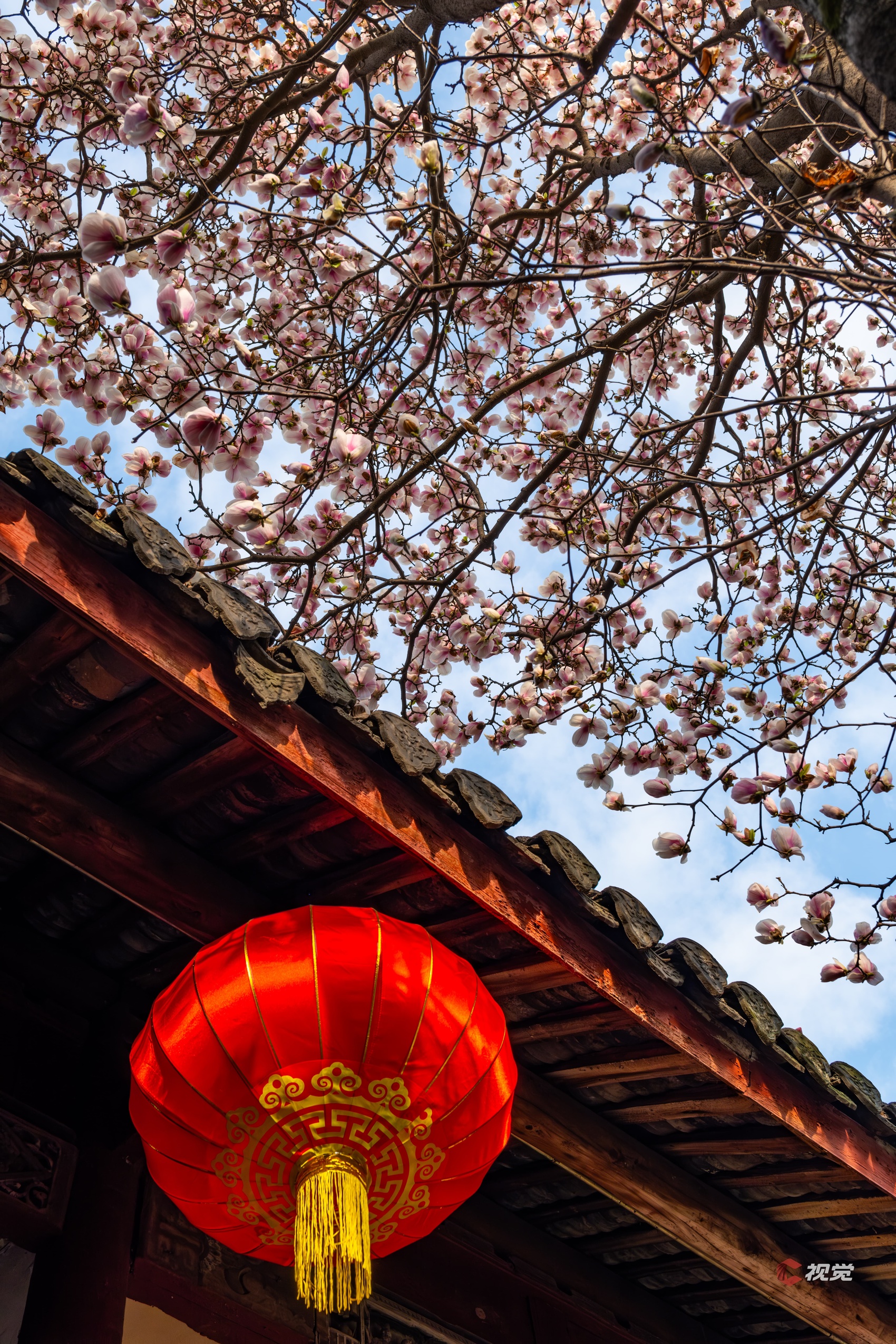 玉兰花开与古寺的灯笼交织,中式韵味十足。C视觉签约摄影师 贾科