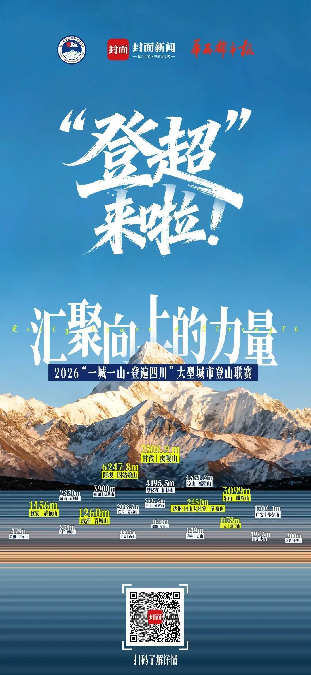 二十一座城,二十一座峰。一场全民登山热潮,正在蜀山大地澎湃兴起。3月起,由封面新闻、华西都市报、四川省登山户外运动协会联合主办的2026“一城一山·登遍四川”系列活动将正式启动。