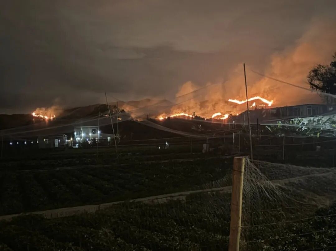 香港消防接报到场,发现有两条火线,其中一条一度长达100米;到晚上近8点,剩下下山鸡乙对开一条长约80米的火线。香港消防处上水消防局工作人员表示,此次山火是从下午5点多开始的,从军地北村蔓延到华山。消防局出动6辆消防车到场扑救,消防员携带大量日常处置山火的工具。