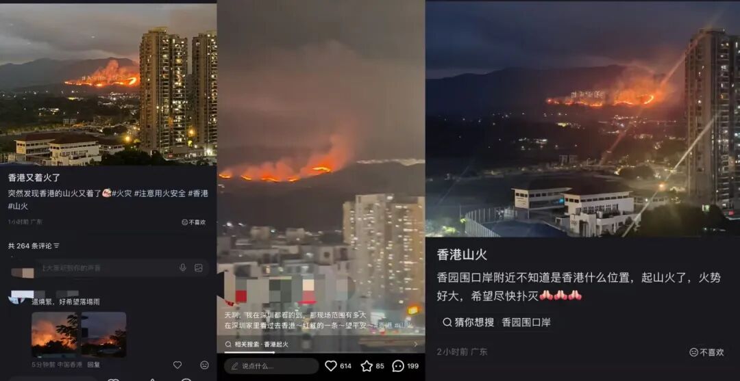 据此前深圳卫视驻港记者报道,2月26日晚上,多名深圳市民发布视频称,香港发生山火。火势连绵上百米,已经燃烧数小时,深圳多处可见。