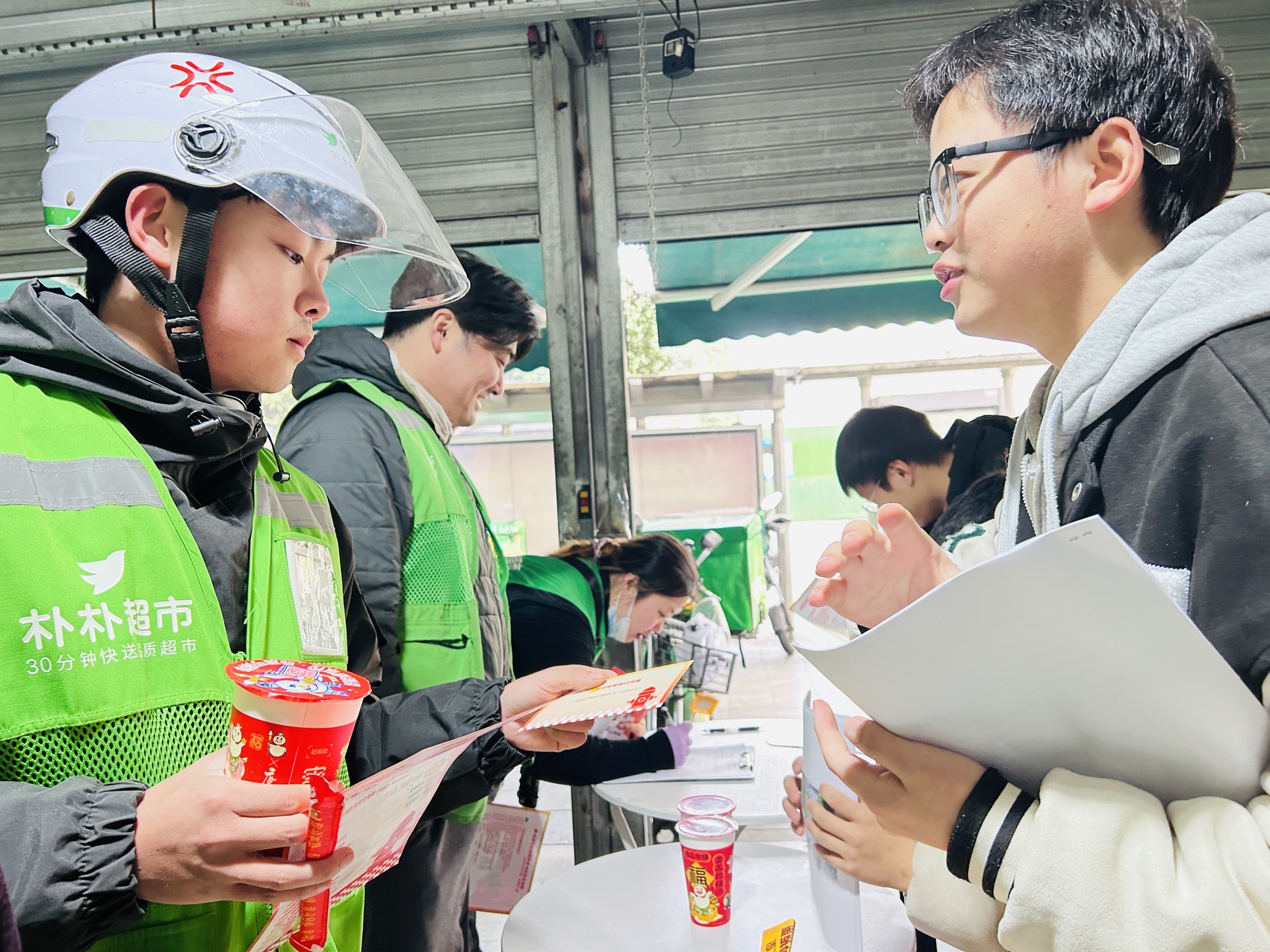 此外,点滴善举也温暖着社区居民们。骑手邹万凯的配送箱里,总留着空间存放可回收物,遇到拾荒老人和环卫工人便主动送上,还会告知可回收物点位,用点滴善举传递温暖;骑手杨浩南则深耕应急能力提升,参加社区心肺复苏等救护培训,不仅在同行车辆没电时伸出援手解燃眉之急,还积极向伙伴介绍社区的各项服务举措,引导大家融入社区。五位骑手各展所长,用实际行动诠释着新就业群体的责任与担当。