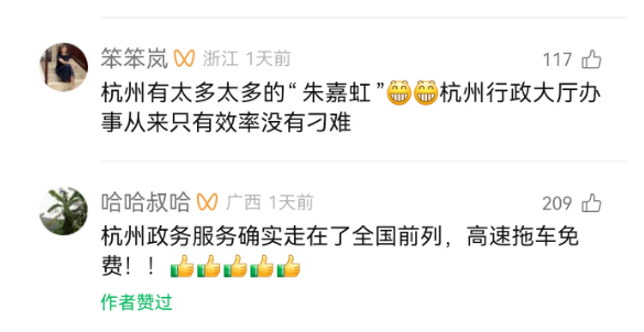评论区里,很快有网友留言,“一点不意外,这就是杭州!”
