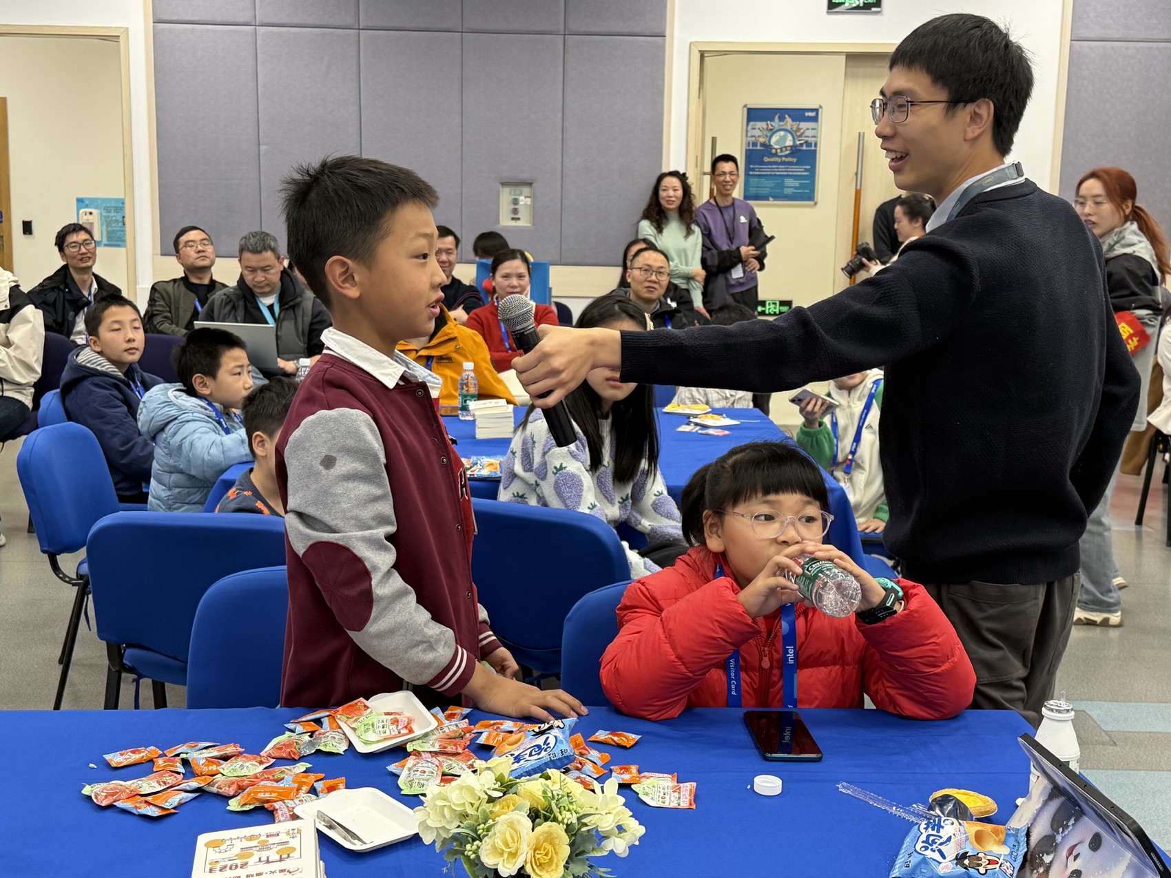 旅程的起点,是再普通不过的沙子。胡昌文用生动的比喻,将提纯、设计、封装、测试等复杂工序层层剥开。“原来芯片,是从沙子变来的!”一个孩子恍然大悟地说道。在AI魔法课堂,大数据专家杨润星让机器识别语音、分辨图像,孩子们争相提问:“它能帮我做作业吗?”“它怎么认识我家的猫?”