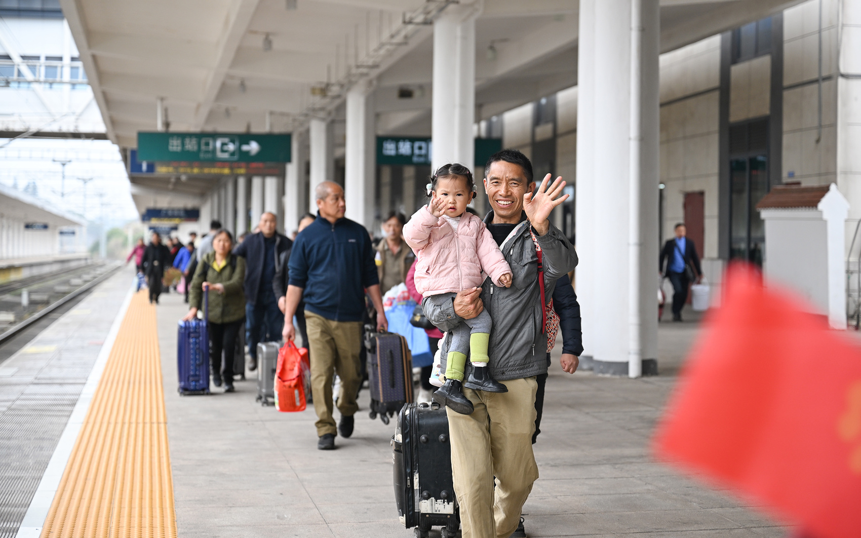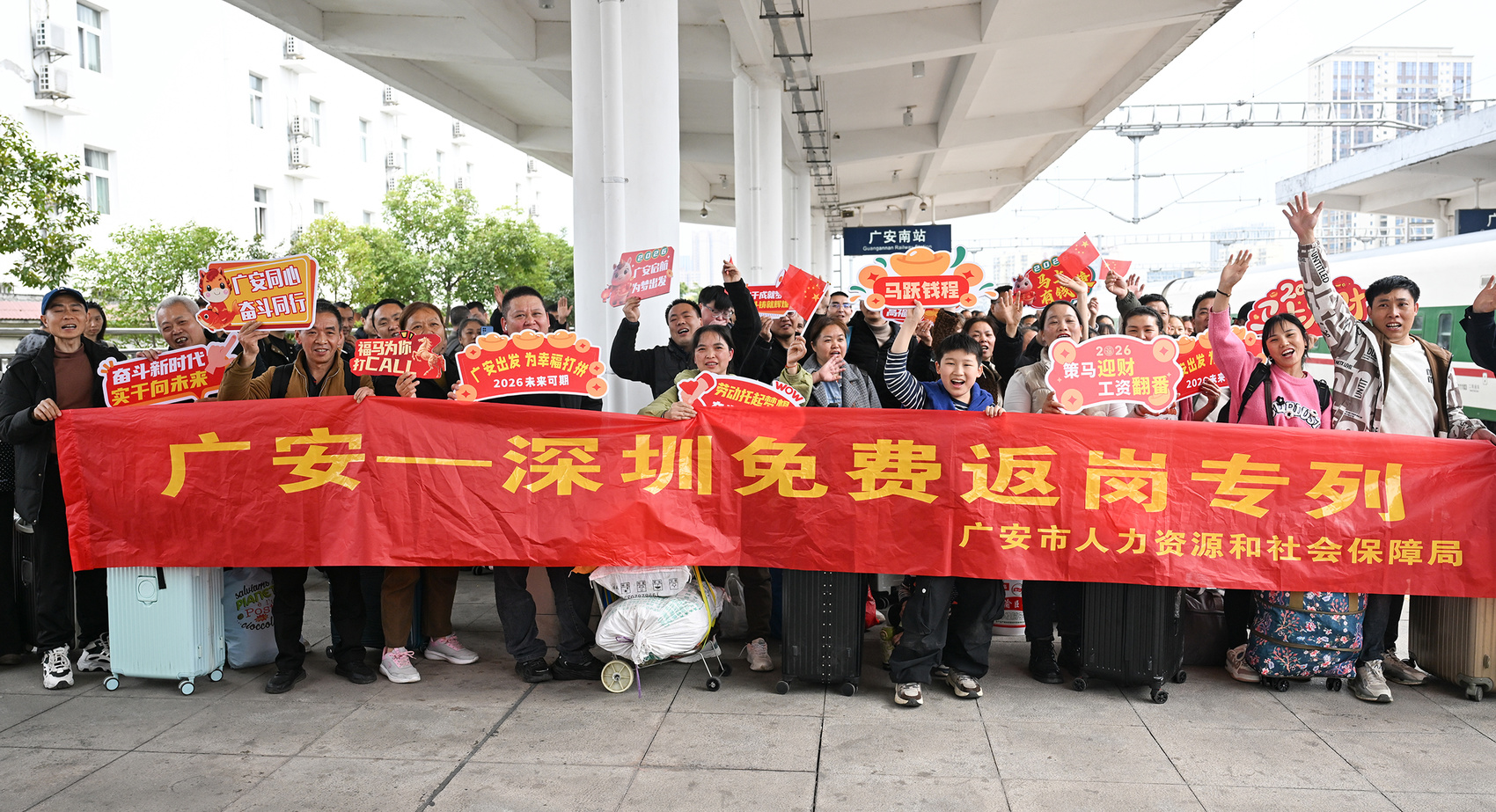 “专列开行前,我们与铁路部门反复对接,优化进站、乘车流线,开设‘绿色通道’,增派党团员服务队和志愿者在候车区、检票口、站台等关键点位,提供行李搬运、进站引导、乘车咨询等全程服务。”广安市人力资源和社会保障局相关负责人介绍,为确保专列安全有序,广安南站派出所“春天的故事”党建品牌团队还在安检通道、候车室开展文明出行宣传,发放铁路安全常识等资料,引导务工人员文明乘车、安全出行。