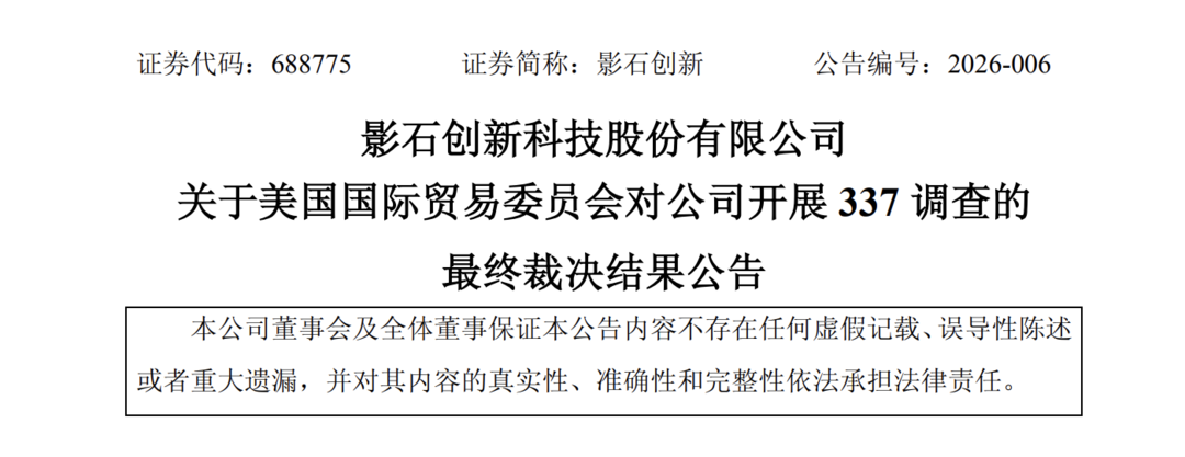 影石创新在公告中表示:“本次337调查未对公司生产、经营造成实质性影响。公司将持续不受限制地在美国进口和销售现有产品。”