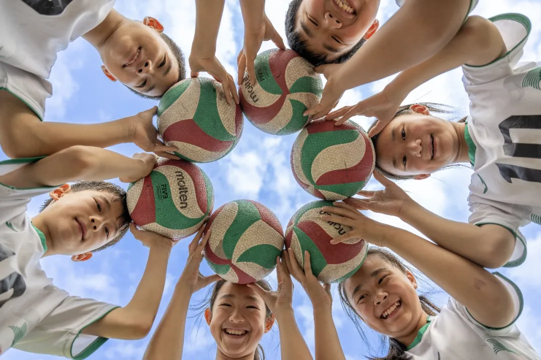 南门小学恒盛皇家花园校区小学生排球社团的孩子们正在练习排球。赵明 摄